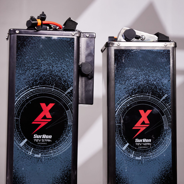 – **Voltage and Capacity**: 72V and 57Ah, providing more sustained power and longer range than the standard Sur-Ron battery.